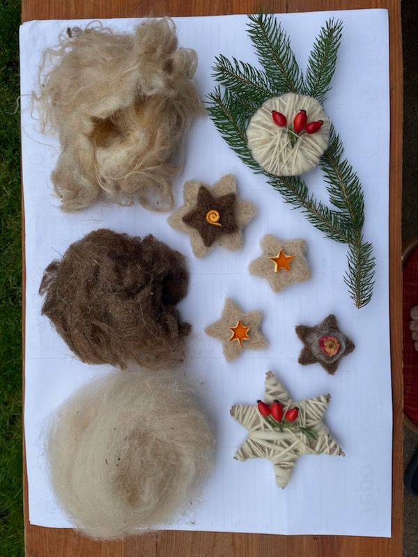 Nejdříve se dozvíme o postupu zpracování surového ovčího rouna a následně si vyrobíme jednoduché vánoční dekorace.