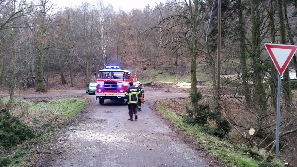 Po nahlášení události operační střediskem jednotka v počtu 3 členů vyrazila na místo zásahu. Na místě jsme zjistili, že vyvrácený strom je zavěšen o telekomunikační vedení a hrozí jeho přetržení. Opatrně jsme odstranili strom a polámané větve z komunikace. Po příjezdu na základnu jsme kontaktovali operační středisko s informací, že je třeba informovat vlastníka sítě, sice nedošlo k přetržení kabelového vedení, ale bylo prověšené cca 2m nad komunikaci a byl značně omezen průjezd většího vozidla, nebo traktoru pod tímto vedením.